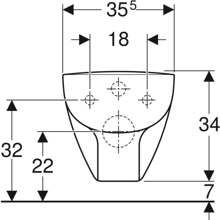 Завышенный керамический верхний край 41 см при стандартной высоте крепления
