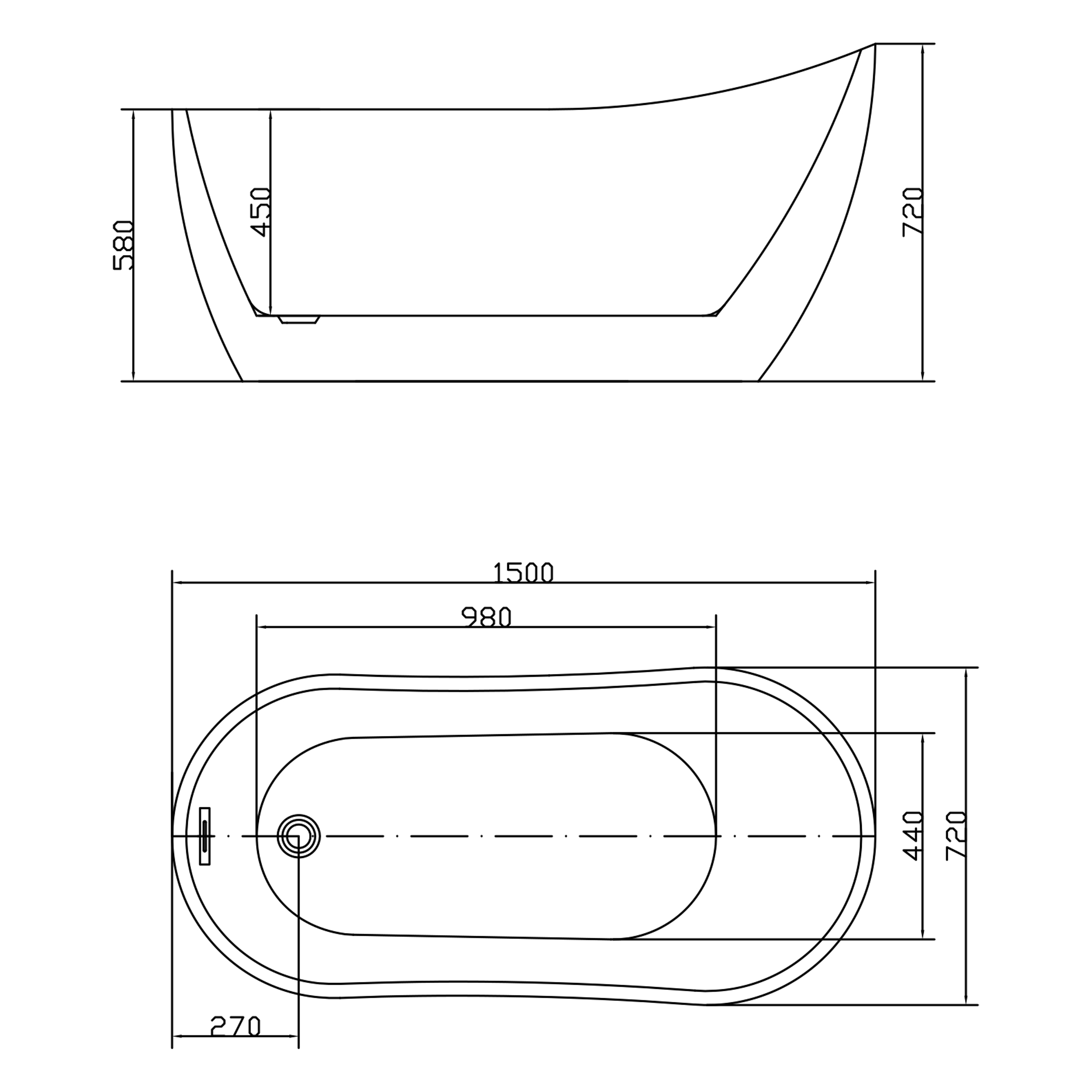 —Ванна акриловая отдельностоящая 1500мм Swedbe Vita 8817