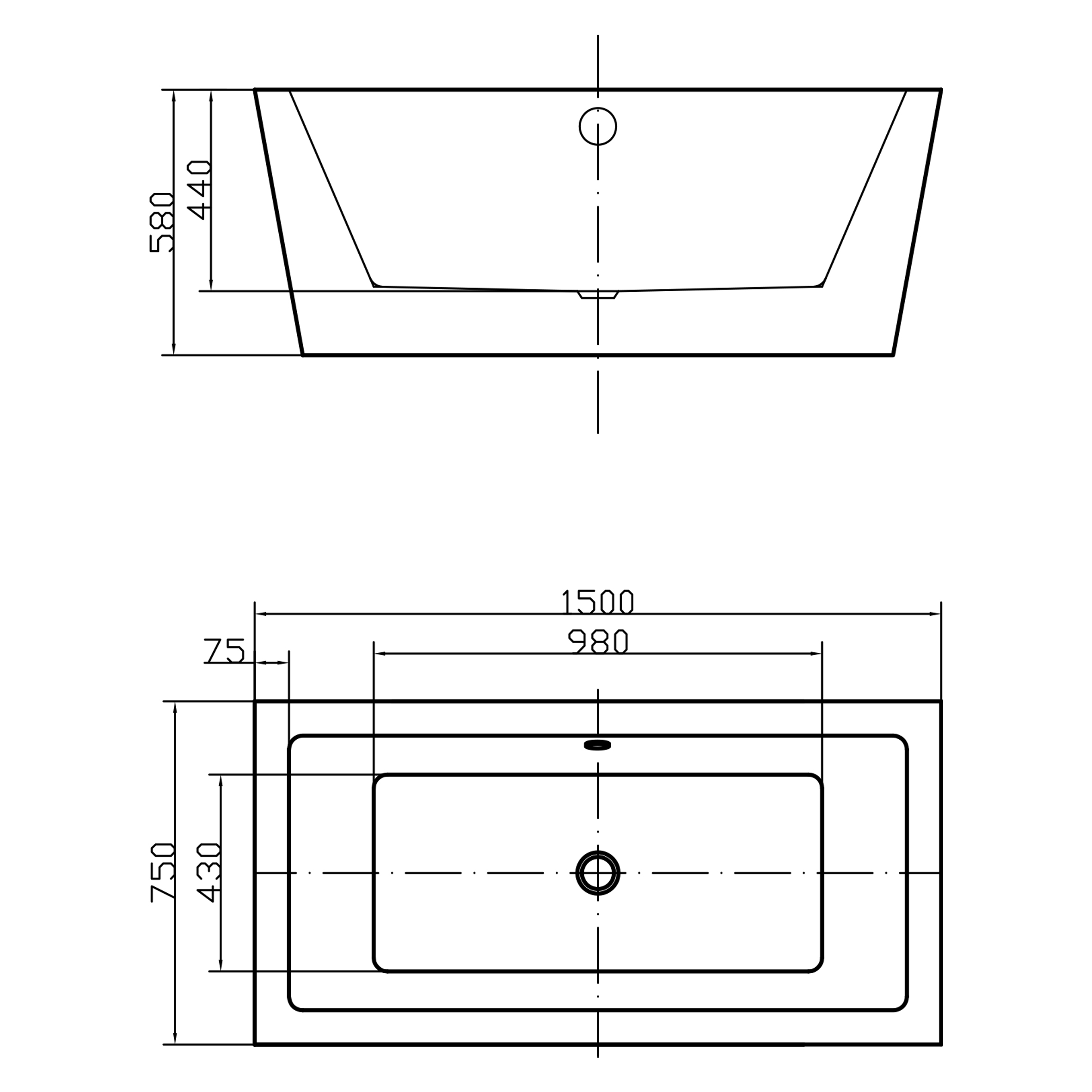 —Ванна акриловая отдельностоящая 1500мм Swedbe Vita 8832