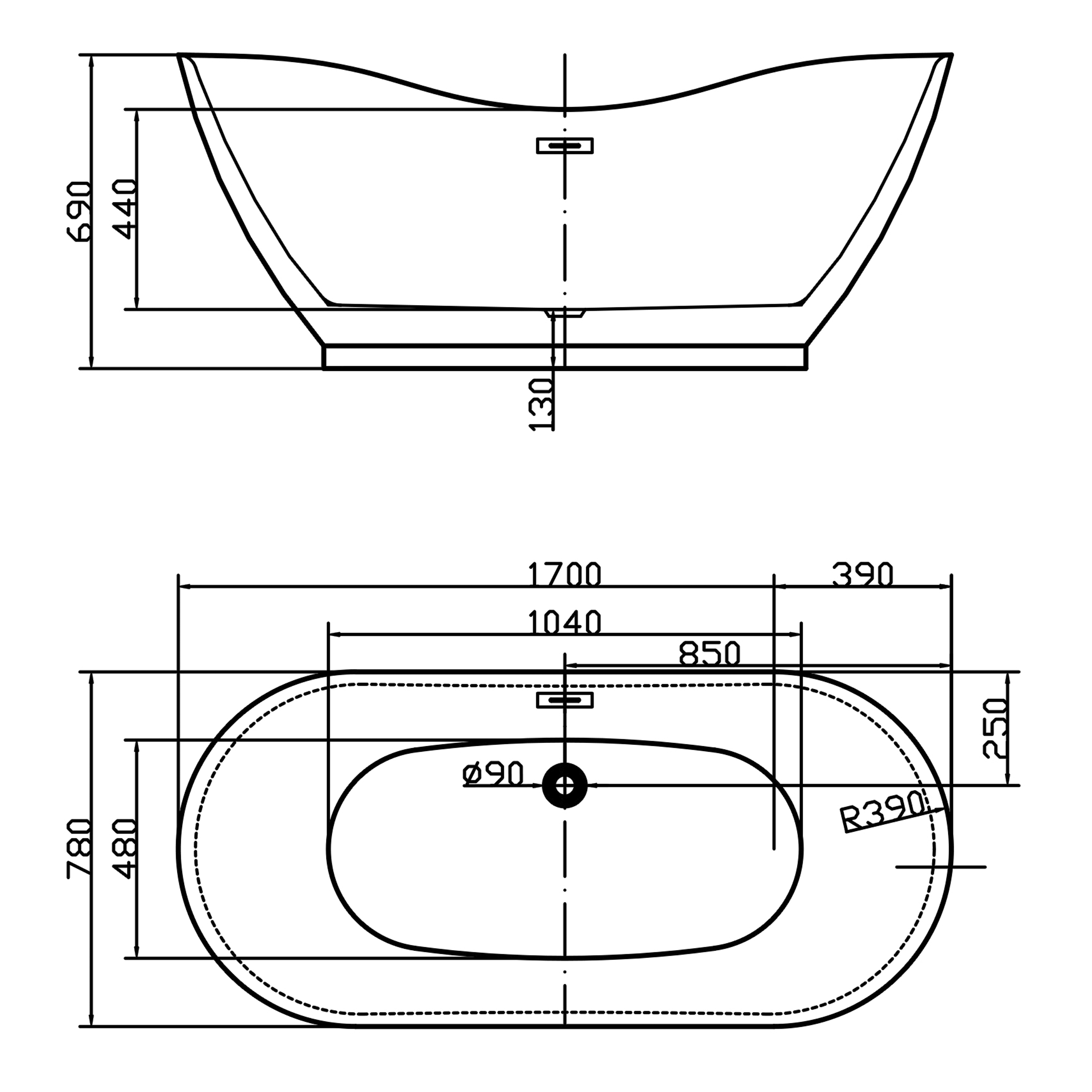 —Ванна акриловая отдельностоящая 1700 мм Swedbe Vita 8835