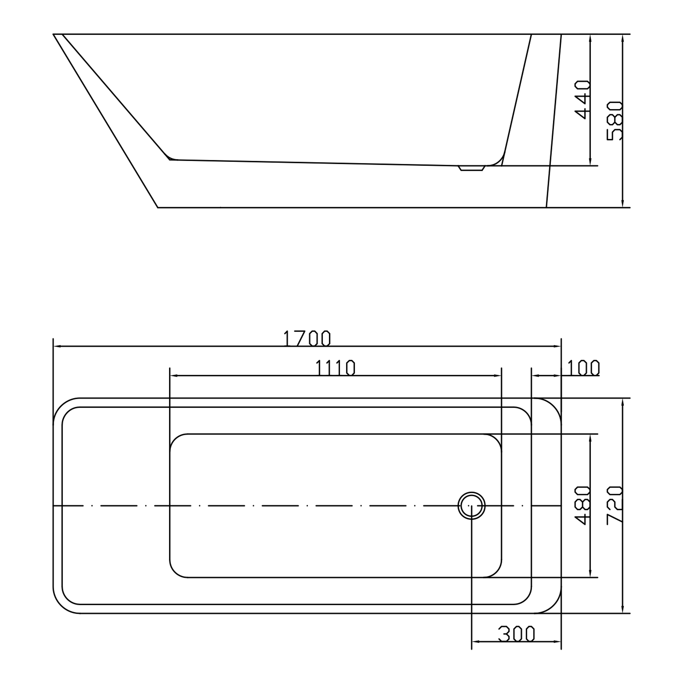 —Ванна акриловая отдельностоящая 1700мм Swedbe Vita 8811