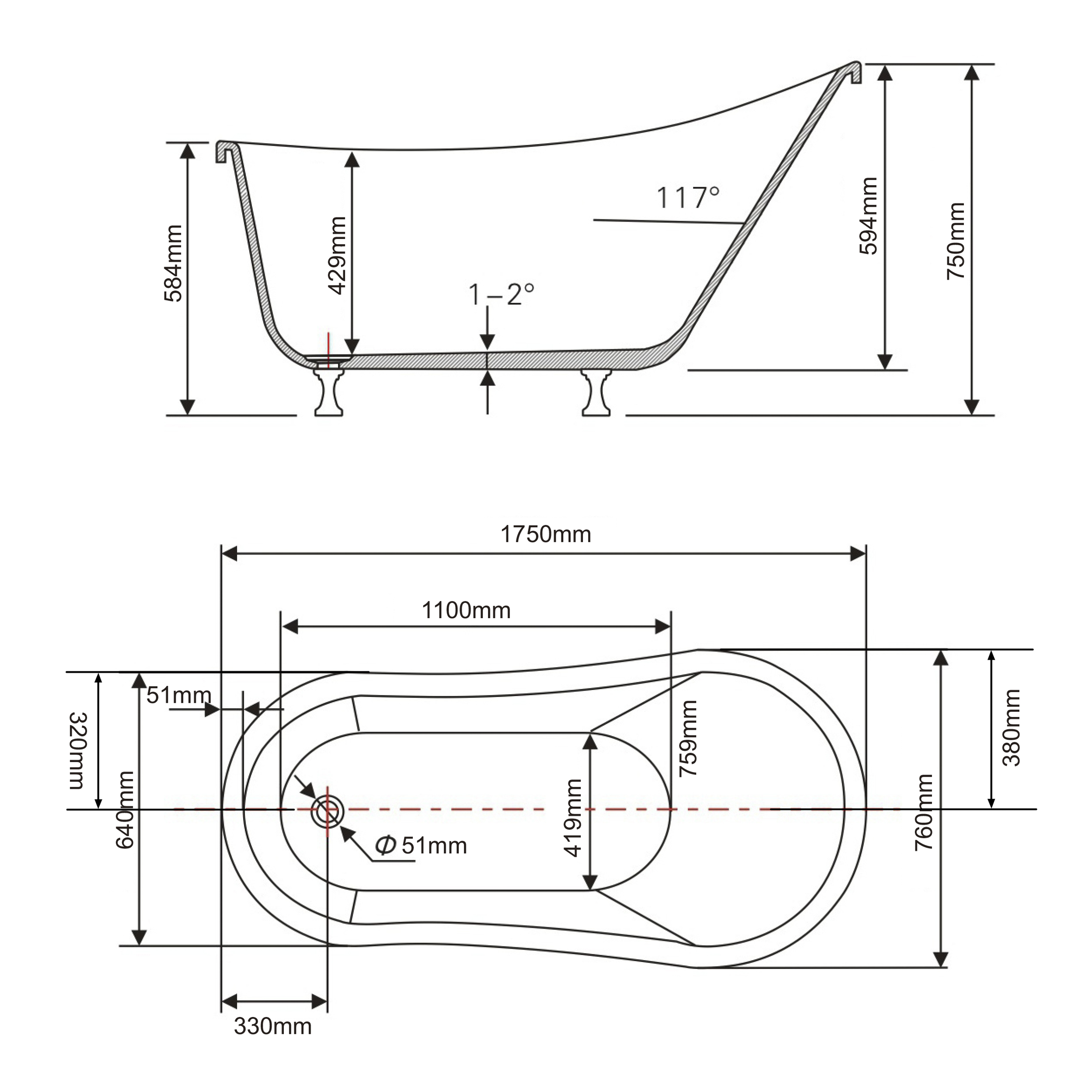 —Ванна акриловая отдельностоящая 1750 мм Swedbe Vita 8819CH