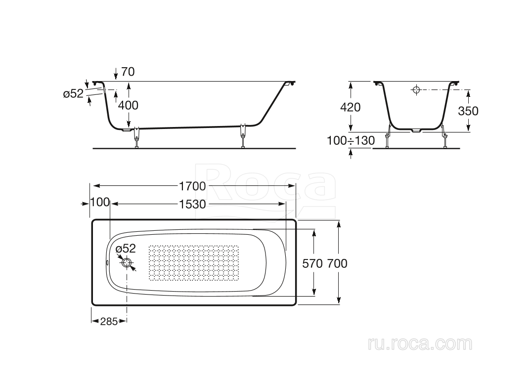 21291100R Ванна Roca Continental 170х70 21291100R