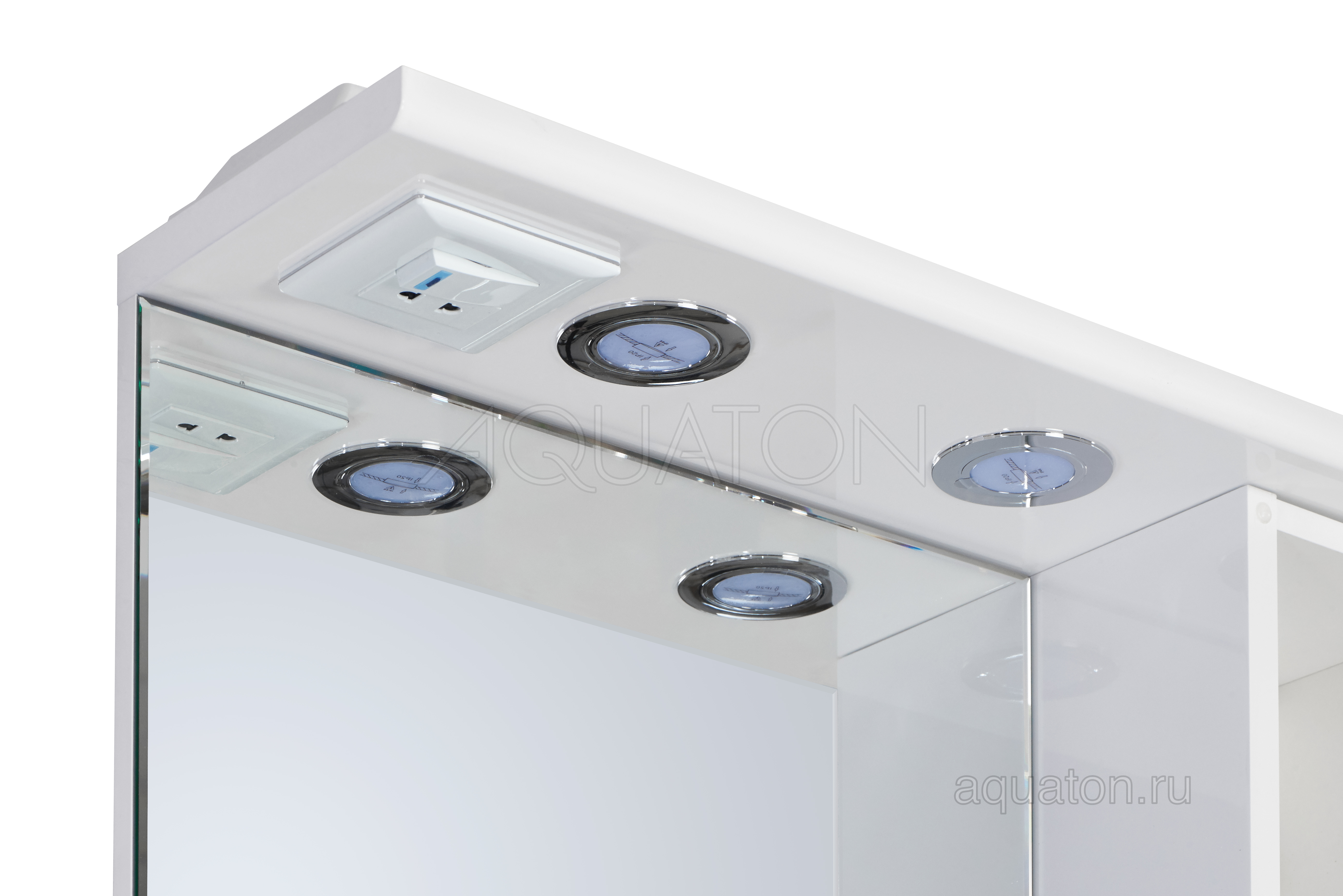 Функциональность и практичность выходят на первый план в модели зеркального шкафа Онда от AQUATON. Простой и лаконичный дизайн, ничего лишнего - идеальное решение для ванных комнат в современном стиле. Корпус из влагостойкой ЛДСП и фасады из МДФ покрыты белоснежной глянцевой краской. Модель оснащена подсветкой, интегрированной в верхнюю панель. Справа от зеркала находится шкафчик с полкой, фасад-створка которого украшен изящной фрезеровкой. Плавное закрывание обеспечивают петли с доводчиком. Гармоничный комплект зеркальный шкаф составит вместе с тумбой AQUATON Онда 60.